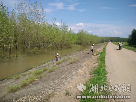 在接興村附近堤段,48歲的村民駱傳見正在為自家的責(zé)任堤段除草。他介紹,按照防汛要求,必須將雜草清理干凈,方便巡查。說話間,他接到電話通知,明天參加巡堤值守。
