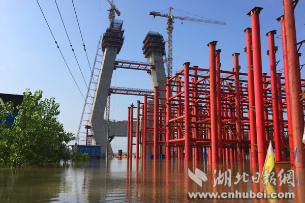 湖北日報(bào)網(wǎng)訊(全媒體記者江萌 通訊員周漓)連日來,受湖南持續(xù)暴雨、三峽水庫加大下泄流量等因素影響,長江咸寧段水位持續(xù)超警戒,湖北省重大工程嘉魚長江大橋項(xiàng)目工地部分區(qū)域被江水淹沒,防汛現(xiàn)場多次出險(xiǎn)。經(jīng)科學(xué)調(diào)度指揮,5日長江1號(hào)洪峰順利通過嘉魚。截至6日晚,大橋南北主塔、橋梁預(yù)制廠及數(shù)百個(gè)墩柱均未出現(xiàn)任何損壞。