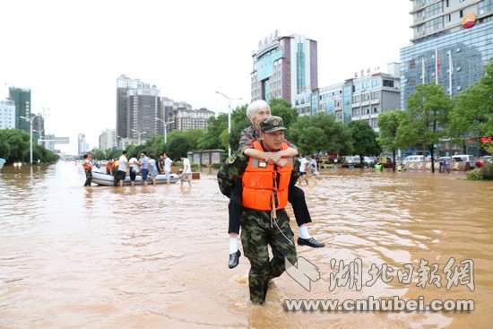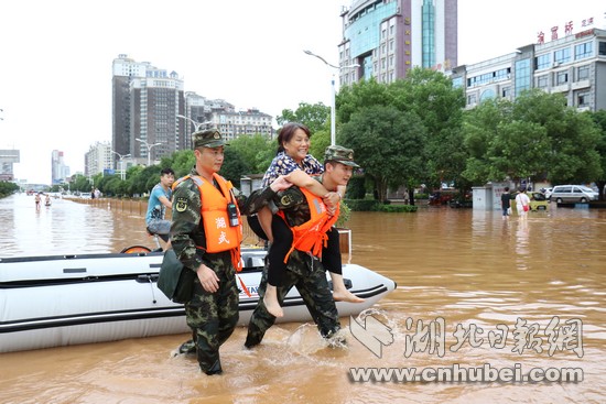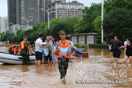 湖北日?qǐng)?bào)網(wǎng)訊(通訊員何智利、何彥卿、記者江卉)8月11日20時(shí)至8月13日12時(shí),咸寧地區(qū)普降大到暴雨,局部特大暴雨量達(dá)204.7毫米。強(qiáng)降雨導(dǎo)致城區(qū)咸寧大道、銀泉大道、玉泉街、書(shū)臺(tái)街等多條城市主干道嚴(yán)重積水,造成嚴(yán)重內(nèi)澇。8月13日13時(shí)許,武警咸寧支隊(duì)接到任務(wù)后,支隊(duì)長(zhǎng)廖光明率50名官兵,出動(dòng)車(chē)輛6臺(tái)、救援繩20根、皮劃艇3艘,轉(zhuǎn)移受災(zāi)群眾300余人,轉(zhuǎn)運(yùn)受損拋錨車(chē)輛20余臺(tái),疏通城市主干道5條。截止13日18點(diǎn),武警官兵還在一線(xiàn)救援。