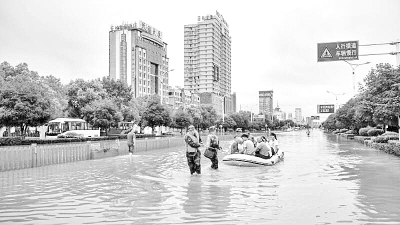 昨天上午,在得知咸寧市溫泉城區(qū)咸寧大道及周邊八個主要交通路口有1米多深積水后。武警咸寧支隊出動50多名官兵,攜帶兩艘皮劃艇前往救援,截至昨天中午,300多名群已全部轉(zhuǎn)移到安全處。