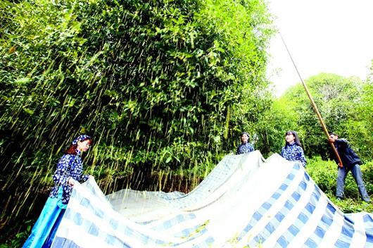圖為:昨日,村民在一棵百年古桂樹下打桂花。當天,“中國香谷桂花小鎮(zhèn)”桂花旅游節(jié)在咸寧市咸安區(qū)桂花源景區(qū)開幕。桂花源風景區(qū)是全國最大的古桂群基地,樹齡50年到100年的桂樹達 2000余株,百年以上古桂樹有200余株。游客們穿行在馨香四溢的桂樹林里,一邊欣賞美景,一邊體驗打桂花的樂趣。